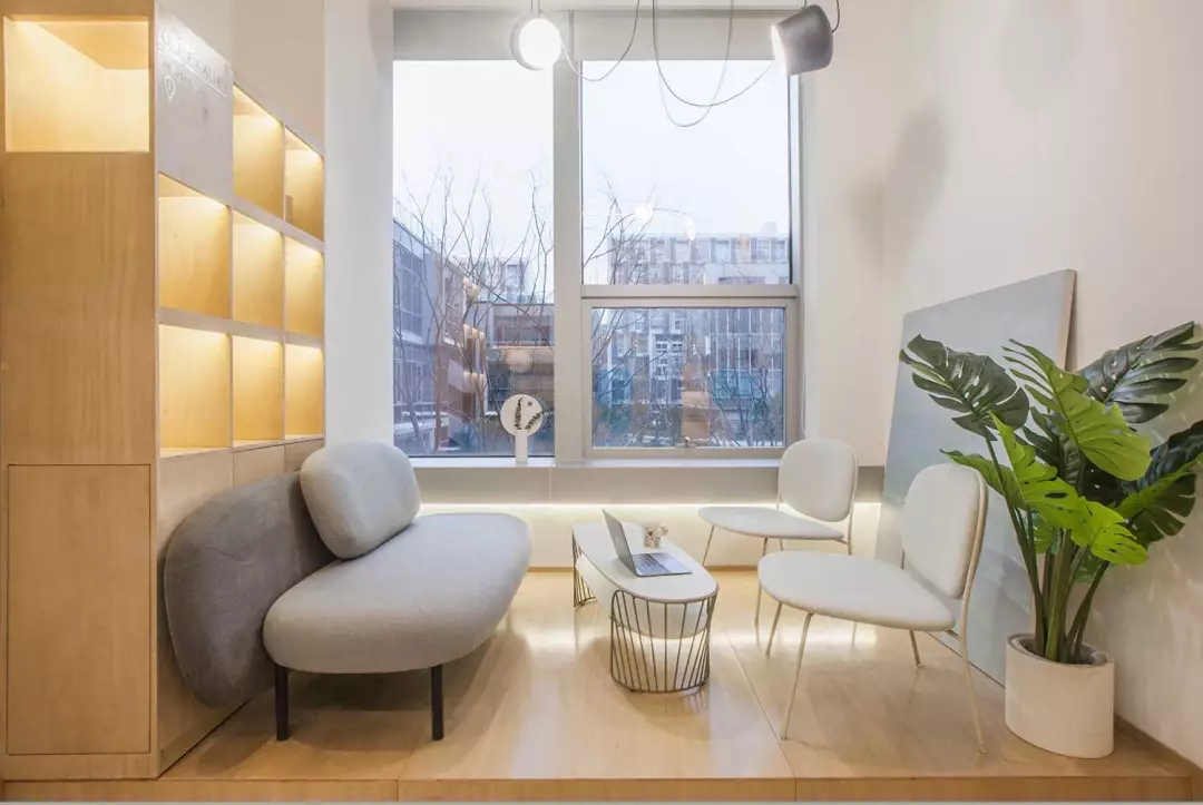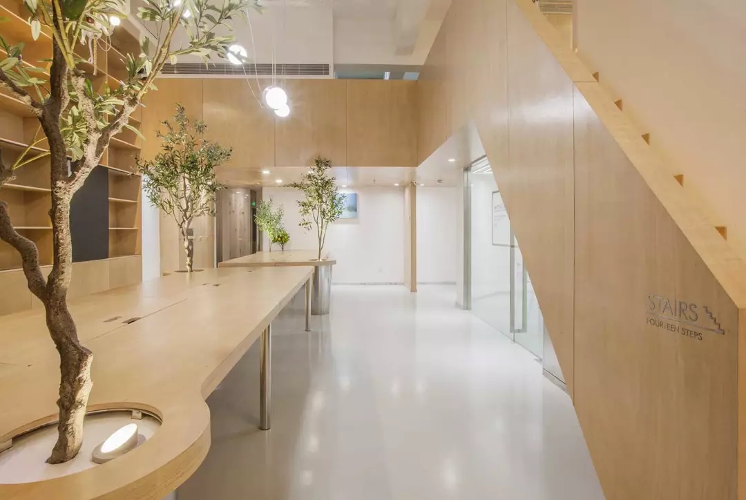 該項目位于上海市閔行區(qū)七寶萬科國際;我們希望工作室足夠的輕松、溫性、創(chuàng)意,于是通過顯性與隱性的符號對我們的目標進行構(gòu)建;空間用了大量溫暖的木色,并組成木質(zhì)的空間體塊,這些體塊以整個白色空間為背景,進行功能與空間節(jié)奏上的構(gòu)筑: