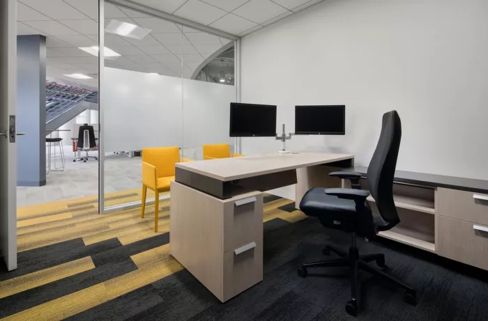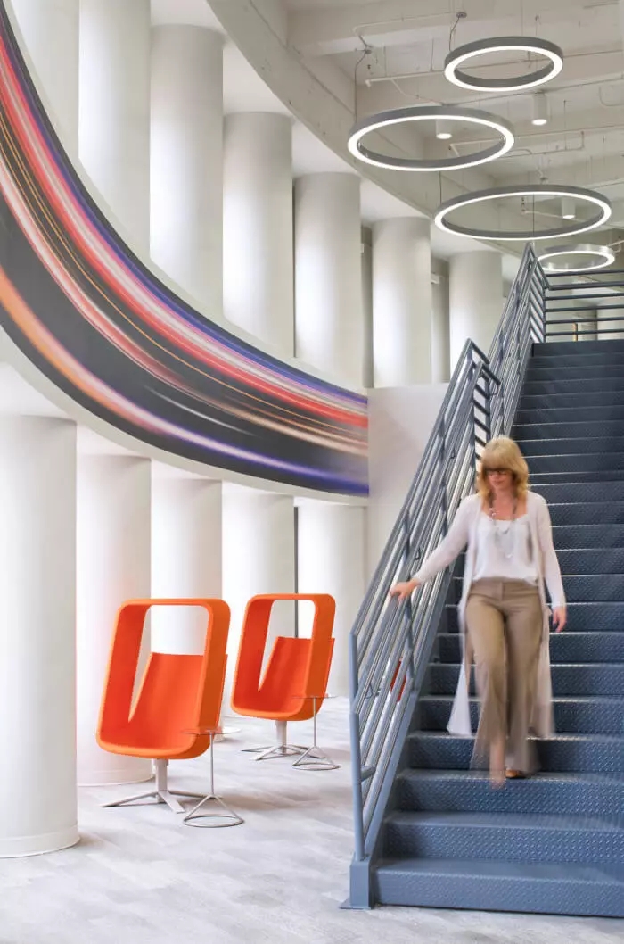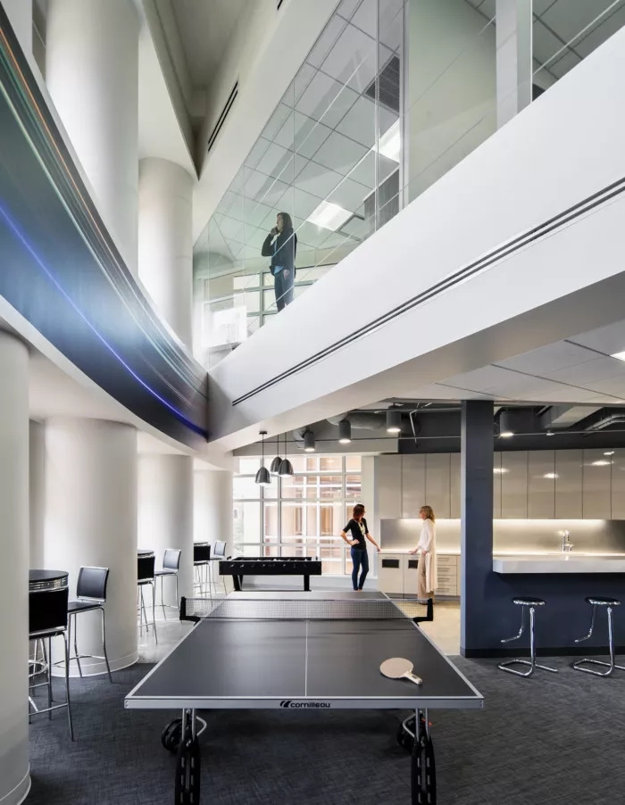 這里每一寸都為員工提供了一個支持他們成功的環(huán)境,依靠技術(shù)手段,打造鼓勵員工連接和溝通的氛圍。墻面白板、視頻會議室、各種空間和家具允許個人和團(tuán)隊(duì)在辦公室內(nèi)的完美位置進(jìn)行協(xié)作,當(dāng)然,如果想來一場即興的乒乓球比賽也未嘗不可。