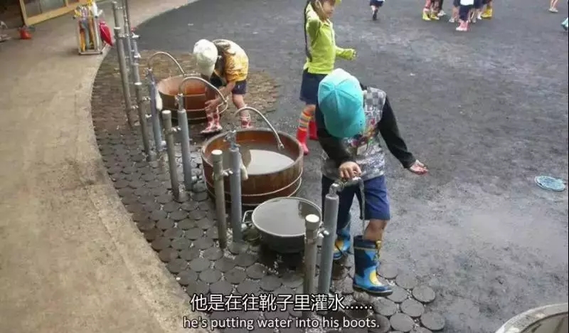 操場上的一排的水龍頭,下面是沒有水池的,洗完后如果不關水龍頭,水就會濺到小朋友的身上,這樣他們會下意識地關閉水龍頭,節(jié)約水資源。