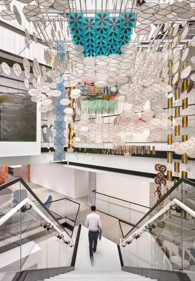 麥當勞總部芝加哥一個充滿活力的長廊布局像博物館或畫廊空間每個總部的九個故事都被設想為一個逐層展開的“篇章”。建筑物中央中庭的多向樓梯提供了醒目的焦點和休閑互動的大道,同時也創(chuàng)造了一種在許多方向向前移動的ESCHER-ESQUE感覺。在這里,JACOBHASHIMOTO的巨型藝術作品向下瀑布,包括數(shù)百個他的標志性微型“風箏”。