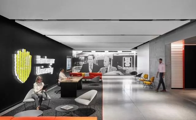 麥當勞的新總部被設想為企業(yè)總部的一部分,以及部分文化中心,學校和歷史博物館。IA室內(nèi)建筑師設計的經(jīng)典工作區(qū)和會議室與O+A工作室設計的工作區(qū)互動,具有酒店場所的外觀和感覺。根據(jù)設計團隊的說法,每個建筑手勢都可以獨立運作,并與周圍的空間合作。