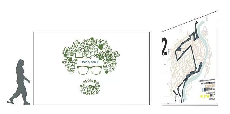以上是本期課程第一個重點(diǎn)——環(huán)境圖形的內(nèi)容界定。它包括室內(nèi)的導(dǎo)視標(biāo)識、一系列公司的文化展示,這兩塊內(nèi)容基本構(gòu)成了室內(nèi)環(huán)境圖形設(shè)計(jì)的設(shè)計(jì)內(nèi)容。
