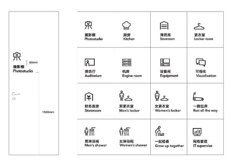 辦公室裝修內(nèi)的環(huán)境圖形設(shè)計(jì)不同于常規(guī)的室內(nèi)軟裝設(shè)計(jì),它相比軟裝設(shè)計(jì)更偏向平面視覺,辦公室裝修內(nèi)的環(huán)境圖形設(shè)計(jì)內(nèi)容主要可以分為兩大類:第一類是包含了辦公室設(shè)計(jì)內(nèi)的導(dǎo)視標(biāo)識系統(tǒng),例如門牌部門標(biāo)識疏散指示消防標(biāo)識設(shè)備間標(biāo)識,甚至門、柜體的推拉指示等。