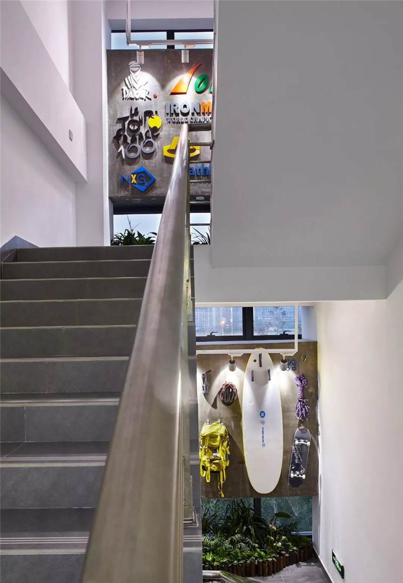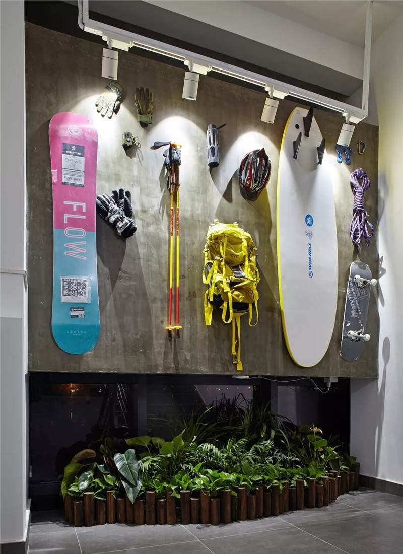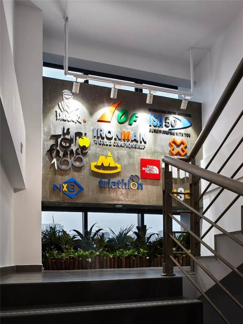 后期我們選用了一些戶外探險(xiǎn)的運(yùn)動裝備,包括有一些極限大賽的LOGO,作為裝飾裝在了墻上,能很好地凸顯科技運(yùn)動公司的主題,視覺效果也非常好。以上是兩個相對完整的案例,接下來還有一部分比較分散的項(xiàng)目有可能沒有形成系列,但是也都有不同的特點(diǎn)。