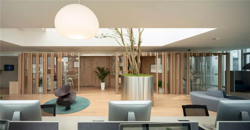 At the beginning of the design, the ownerproposed to design a “new office space with a sense of the future.”. But whatis the sense of the future? When we communicated with the owners on this topic,our ideas became more and more consistent. The "Sense of the future"is not the novelty and cool of technology, but the design of space - thecreation of spatial touch, the atmosphere of ecology and freedom.