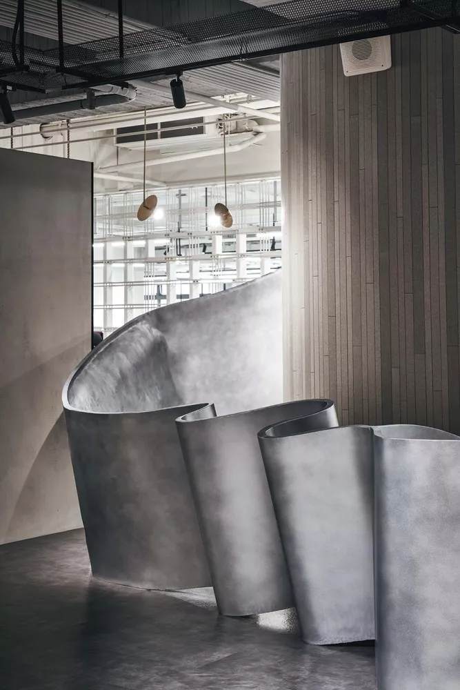 創(chuàng)意是無限,沒有邊界的。是一條線、亦是線聚集轉(zhuǎn)化而成的曲面。直線,是思考的軌跡。曲面,是每個(gè)創(chuàng)作的轉(zhuǎn)折,線條的動靜之間,串聯(lián)了空間,刻意保留基地原貌的原質(zhì)肌理,植入了新的設(shè)計(jì)元素,呈現(xiàn)粗曠和細(xì)致的沖突美,來表達(dá)品牌精神:前衛(wèi)、年輕、精致、優(yōu)雅。充滿雕塑感的柜臺,佇立于公共空間中充滿風(fēng)采,勾勒新穎且醒目的企業(yè)形象。