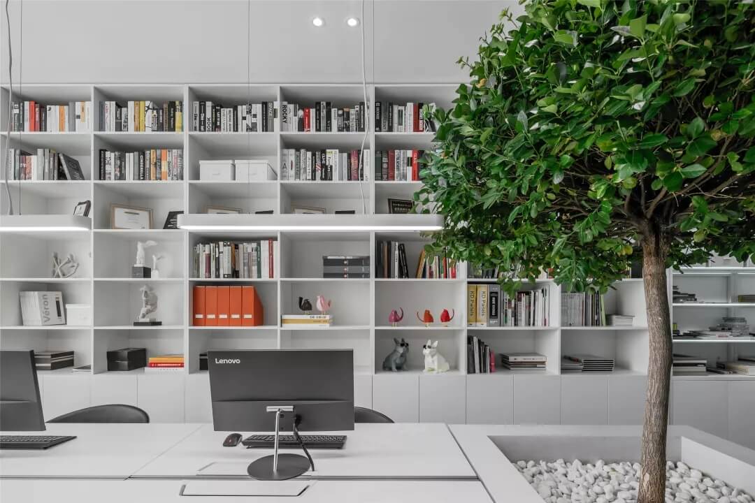 觸覺設(shè)計巧妙擷取文化于當(dāng)代都會空間,展現(xiàn)出雅致韻味的同時留下了更多觸碰的余地。綠植來點亮辦公場所的鮮活生命力,清逸的色彩是思想游龍的軌跡,在留白的空間中伸出觸角,觸覺所及之處,思維綻放遐想。