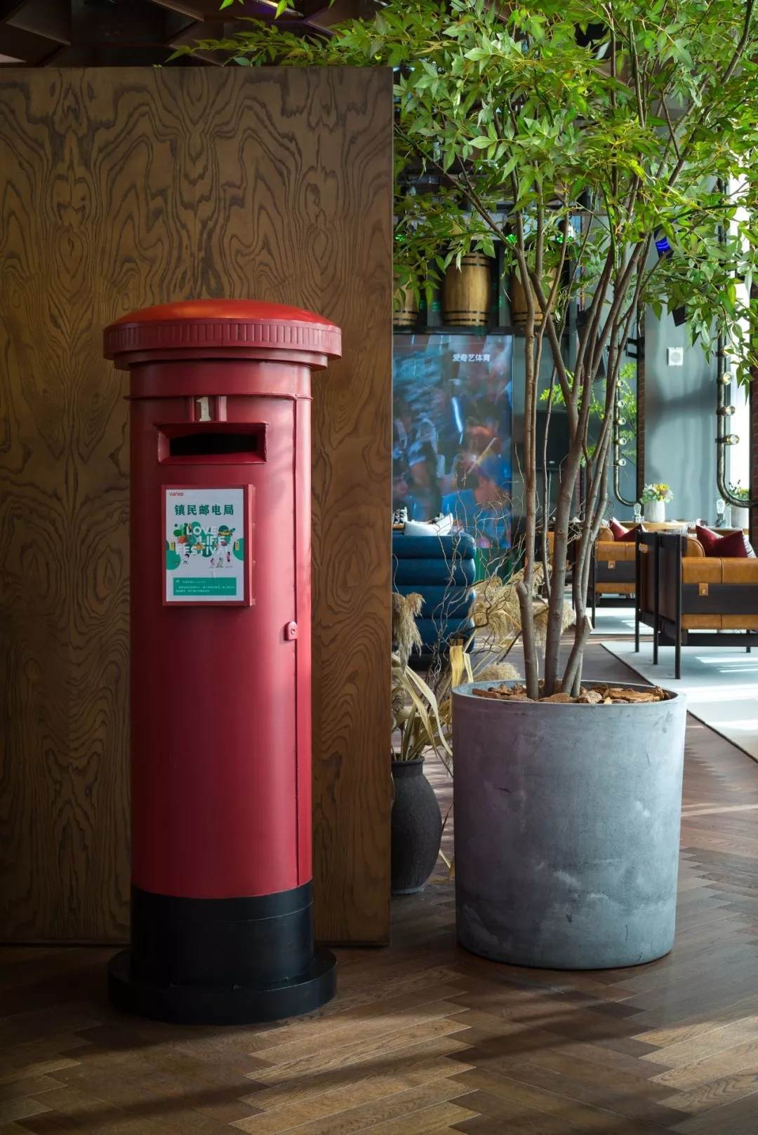 未多加修飾的天花,同樣是設(shè)計(jì)中工業(yè)風(fēng)的一個(gè)常規(guī)美學(xué)指向。體育會(huì)所的明確定位,加之依托周邊足球場(chǎng)等體育設(shè)施,使得體驗(yàn)中心更兼有了一個(gè)新的身份定位——體育愛(ài)好者聚集觀看比賽的休閑場(chǎng)域。