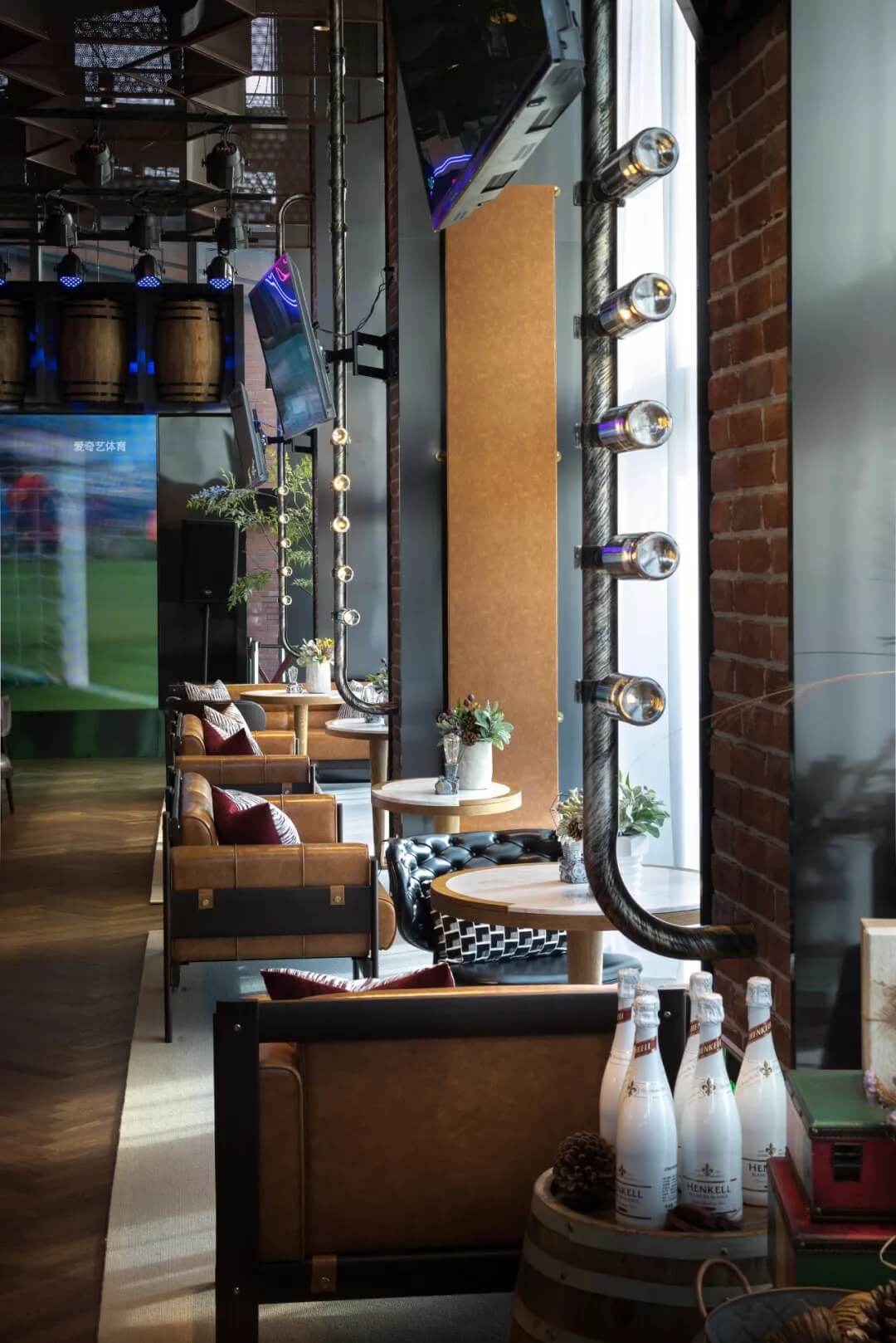 樂(lè)尚設(shè)計(jì)擔(dān)綱本案室內(nèi)及軟裝設(shè)計(jì),以國(guó)際化、多元化的設(shè)計(jì)詮釋風(fēng)格定位,在手法上提煉工業(yè)風(fēng)的構(gòu)件元素,“工業(yè)風(fēng)的形式與氣質(zhì)融注其中,自然的生態(tài)美亦盡數(shù)納入,粗獷與細(xì)膩在映襯中的美學(xué)意義更臻完滿,設(shè)計(jì)的意旨得以實(shí)現(xiàn),營(yíng)造出俱樂(lè)部看球賽現(xiàn)場(chǎng)的濃郁氛圍感。”