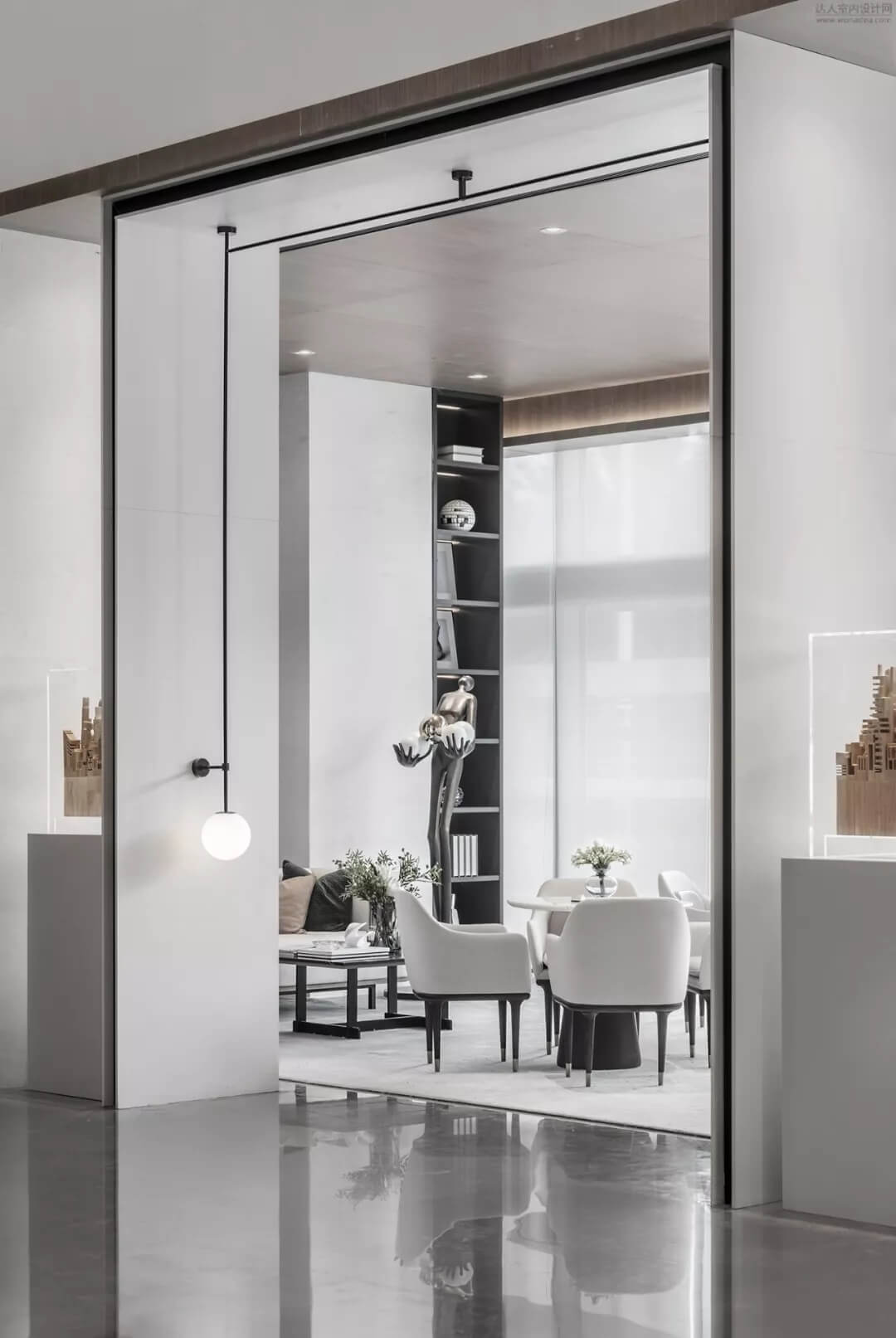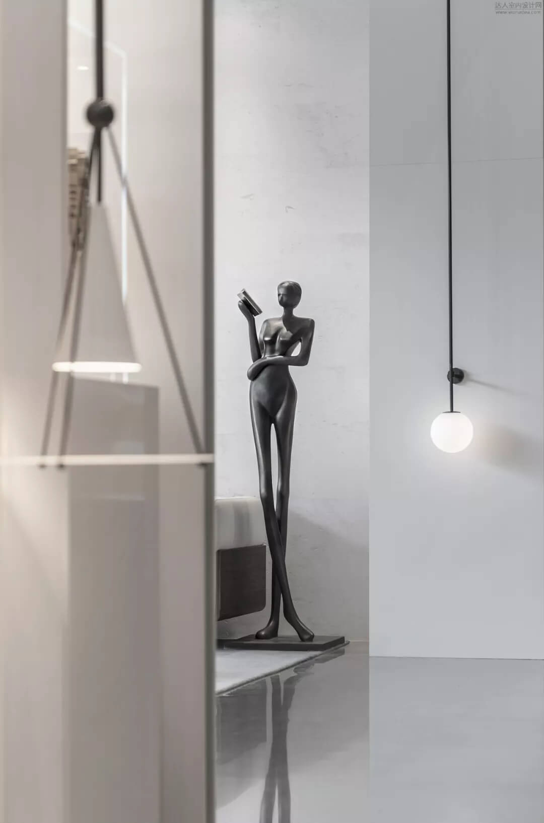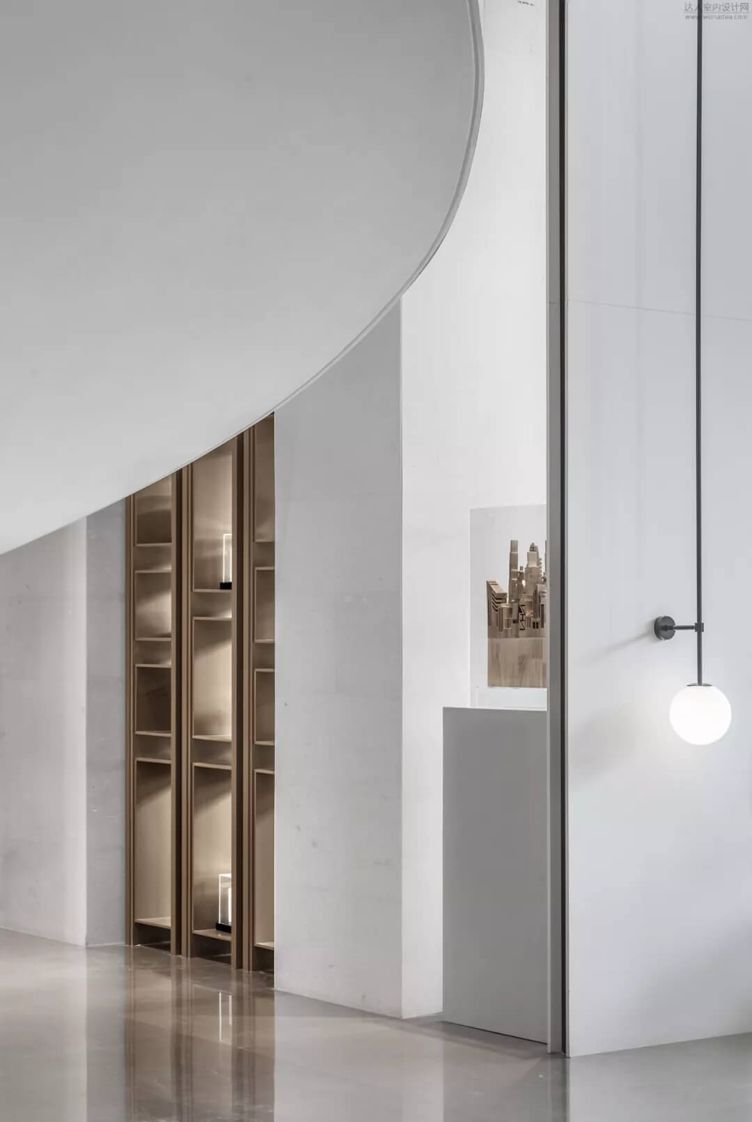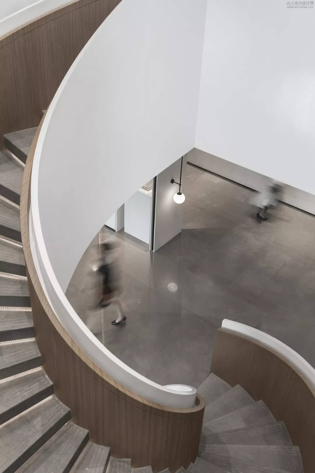 淡雅的白色配以溫馨木色的夢幻般旋轉樓梯入口,白色球體與之呼應,旋轉而上,動態(tài)感的景色盡收眼底,格子狀猶如延續(xù)的·星際穿越,感受平衡時空不同維度的交措時光,身處'空間',在無限與有限中穿梭,不經意的轉角余光是同色的球燈相映,優(yōu)秀的設計師是會講故事的人。