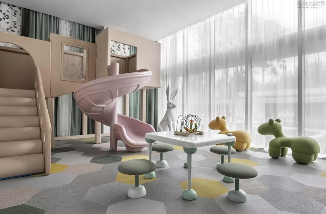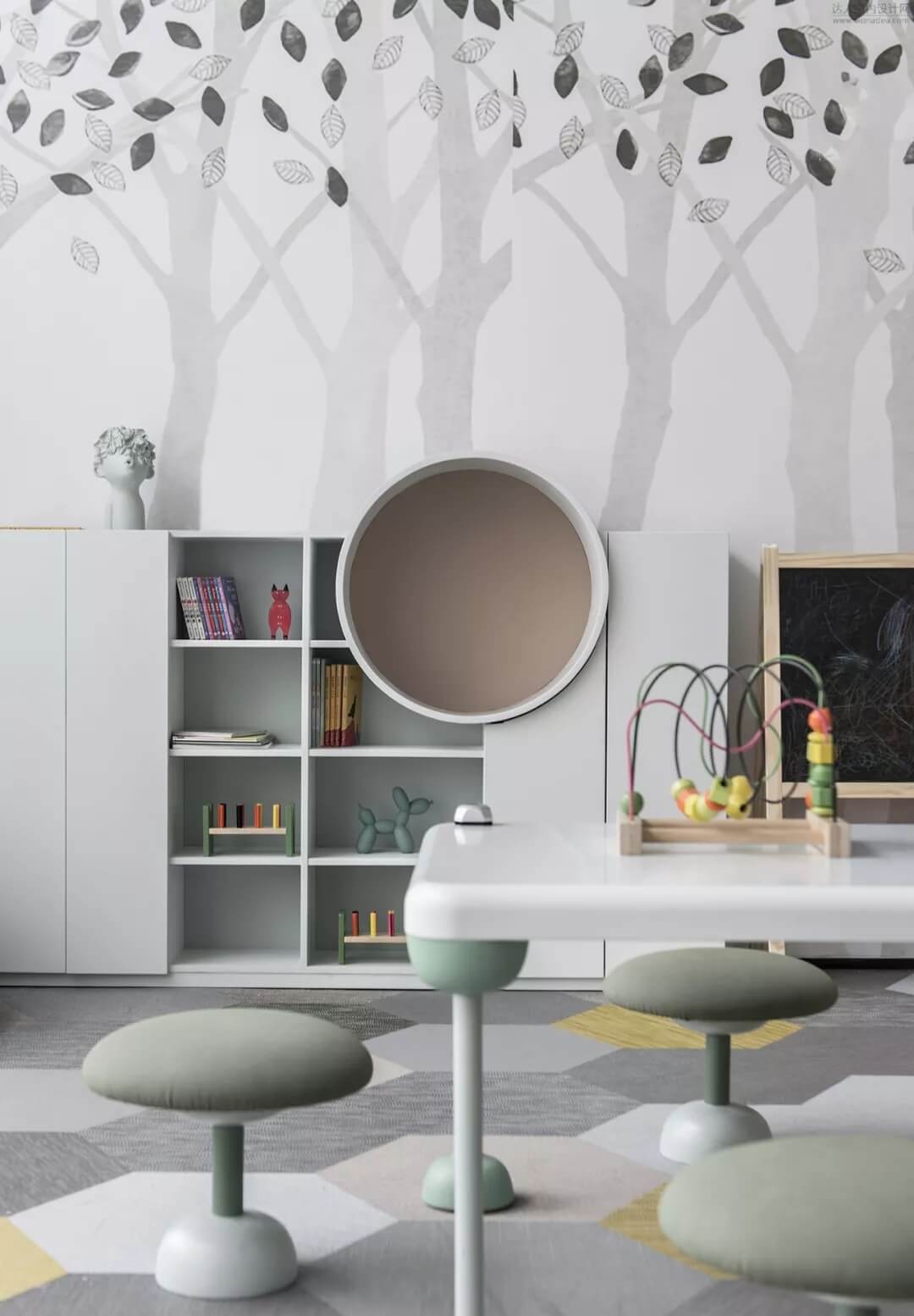 兒童區(qū)曼妙著森林深處的味道,暖暖的顏色彩散發(fā)著與自然 ,生命,和平共處的氣息,玻璃的陽光開放式結構,智慧的精靈無處不在,響應著空間的靈動氣息。