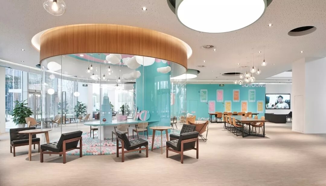 美麗生活館,開(kāi)拓了新的辦公空間接待區(qū)域使用模式,它融合新氧接待,面試,對(duì)外文化展示,咖啡社交等多元化功能,不僅僅是新氧人的前廳,更是對(duì)外開(kāi)放,接納周邊其他企業(yè)及社會(huì)人員在此休憩,商務(wù)洽談的公共空間,充分彰顯了新氧開(kāi)放包容,活力自信的社交屬性。
