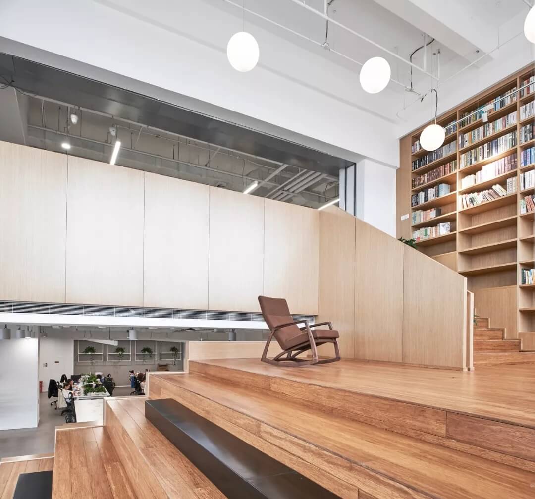 美不止于外在,更追求內(nèi)心。8-9層是新氧心靈之約—圖書(shū)閱讀區(qū)。木飾面板大樓梯,高懸掛的裝飾燈,營(yíng)造出安靜舒適的閱讀氛圍,同時(shí)也可以作為小型沙龍或讀書(shū)分享活動(dòng)場(chǎng)所。