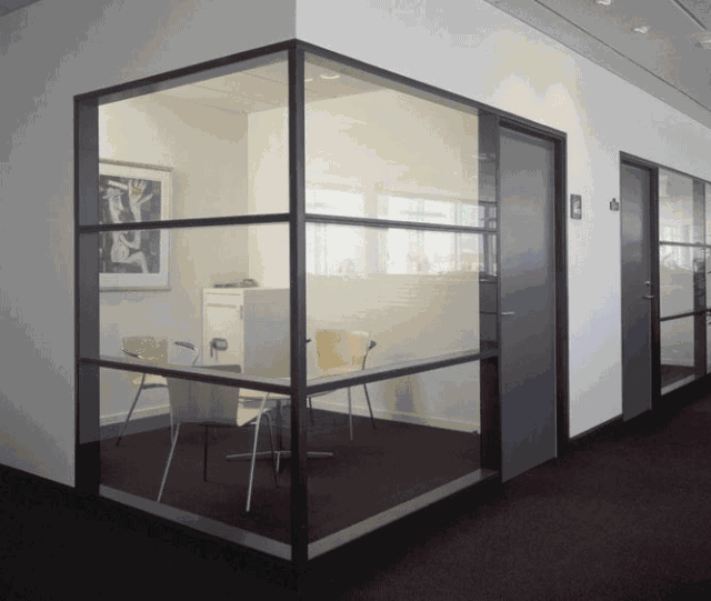 3、在辦公隔斷上使用時,可以達到瞬間隔離會議室等隱秘功能。也可提升公司整體形象。