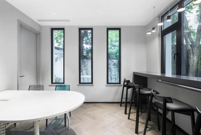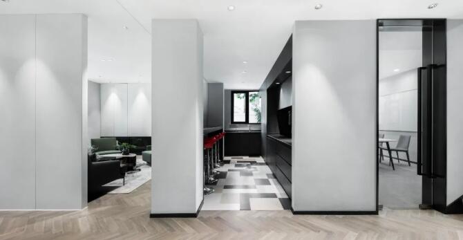 室內(nèi)為符合當(dāng)代辦公需求,定位現(xiàn)代簡約時(shí)尚的風(fēng)格,白色和黑色的主色調(diào),中間銜接色的灰色調(diào),將一至三樓空間一氣呵成,沒有多余的修飾,打造出一個(gè)宜居、充滿藝術(shù)氣質(zhì)的住宅式辦公環(huán)境。