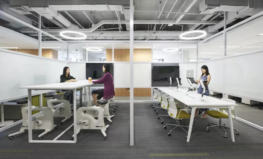 龍湖集團(tuán)辦公空間在設(shè)計(jì)初始就提出了針對(duì)員工使用健康的功能化家具體系建立,并在功能平面中單獨(dú)劃分出了功能空間,配置有站立式辦公家具及騎行式辦公家具,將鍛煉與工作相結(jié)合,增加了辦公的趣味性,也借以提醒員工培養(yǎng)良好的健康理念。