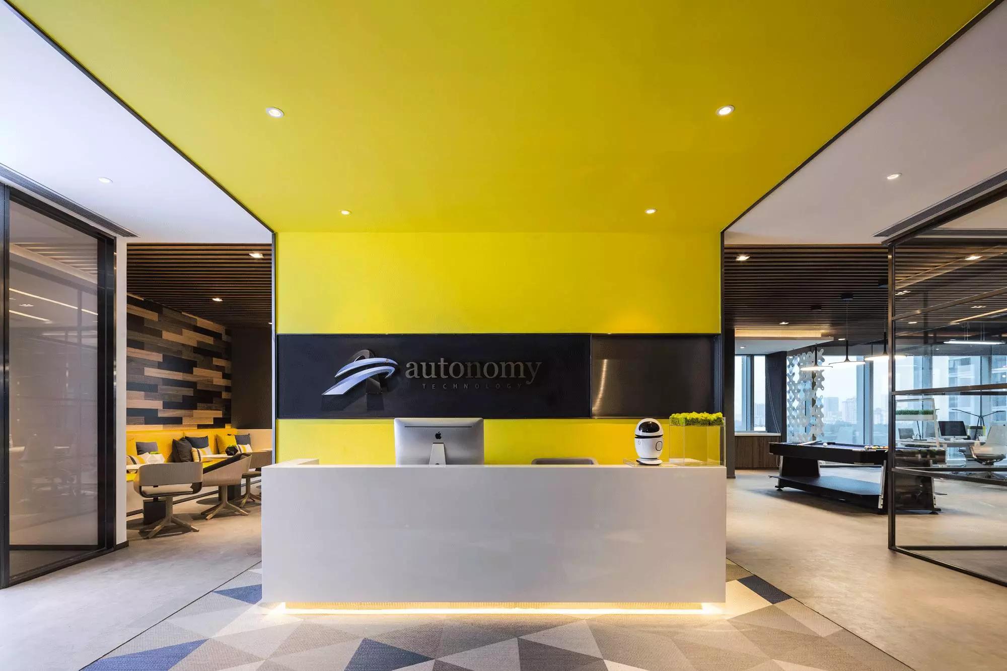 入口,一抹明亮的暖黃尤其奪目,且從背景墻開(kāi)始延伸、直至天花,渲染了科技感,反差較大的色彩搭配給眼睛帶來(lái)強(qiáng)烈的視覺(jué)沖擊,一眼便能望見(jiàn)“autonomy”,點(diǎn)明主題。