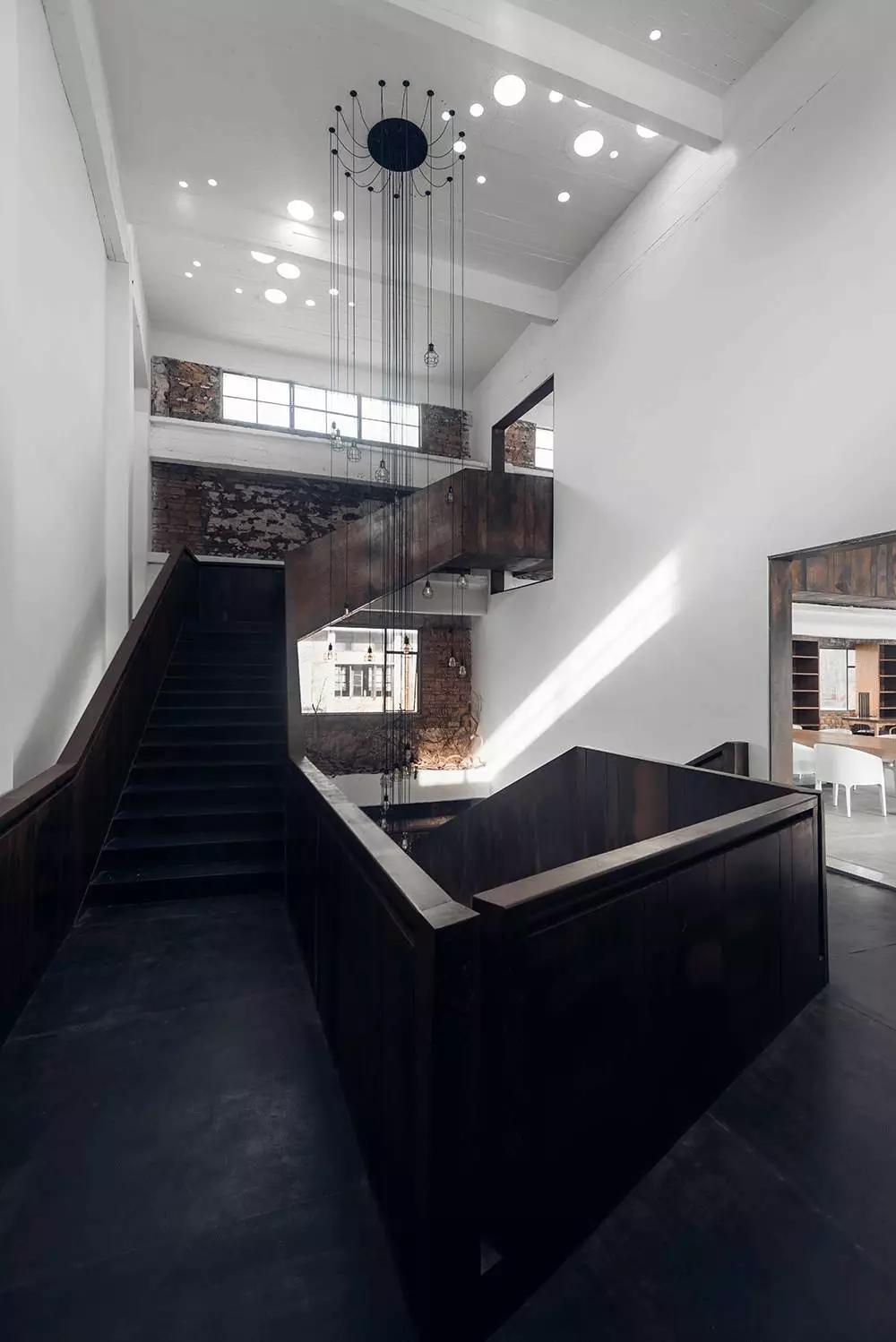 鐵質(zhì)樓梯像是舊體廠房生長出的枝椏,營造出強烈但不顯突兀的現(xiàn)代感。